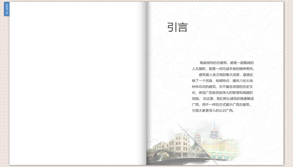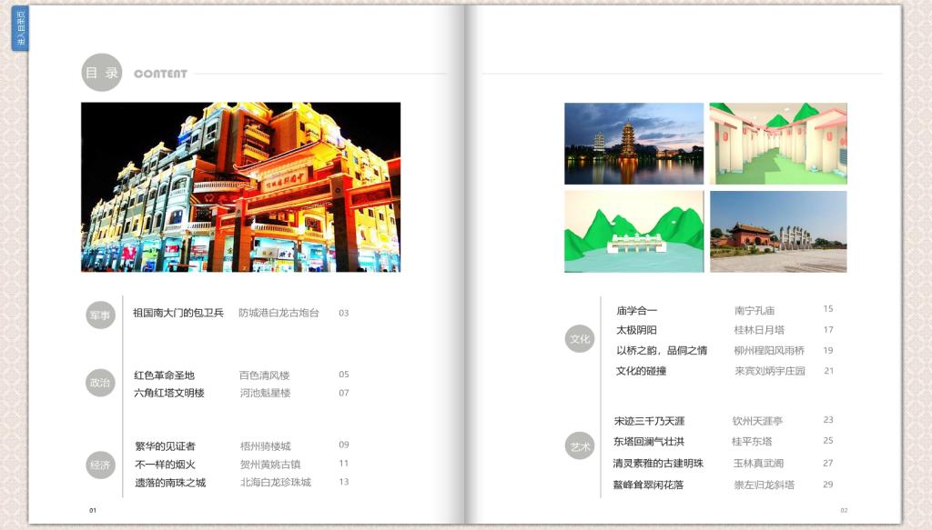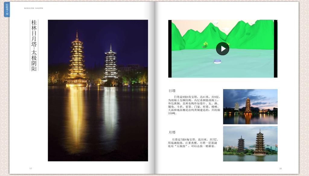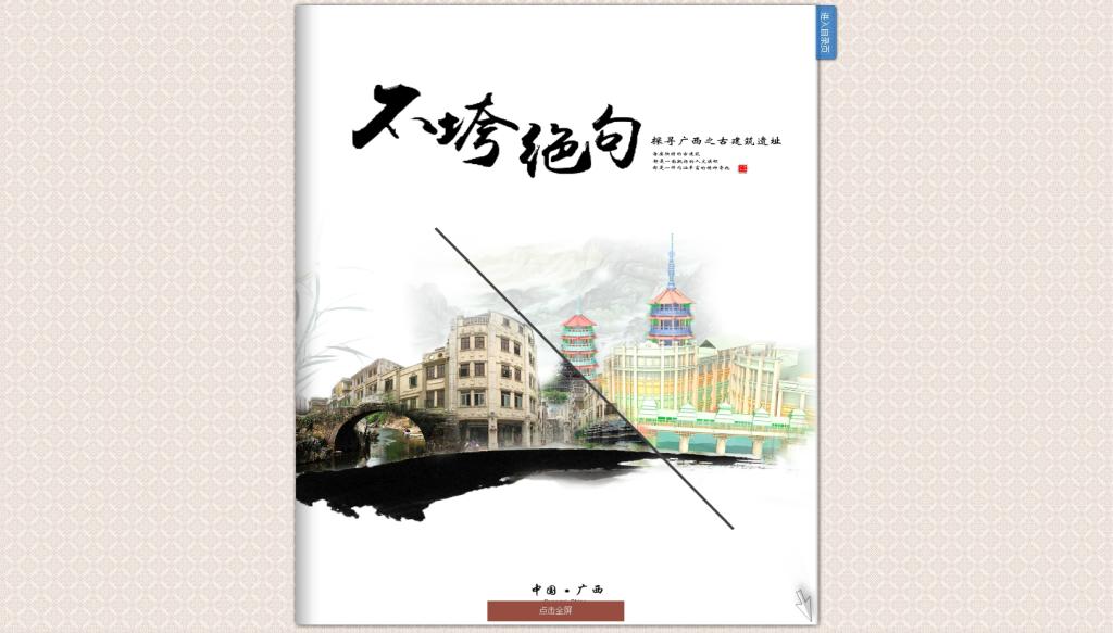 为更好对外将广西传统文化传播。我们对广西各地市的14个古建筑进行了电子杂志的制作。以低多边形与卡通风格的三维建筑动画短视频结合图文制作而成。