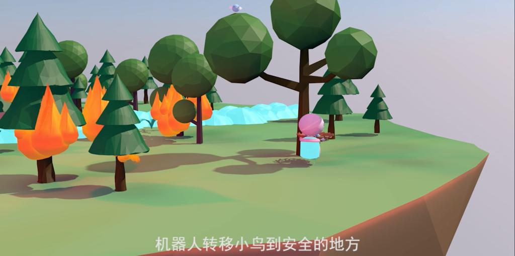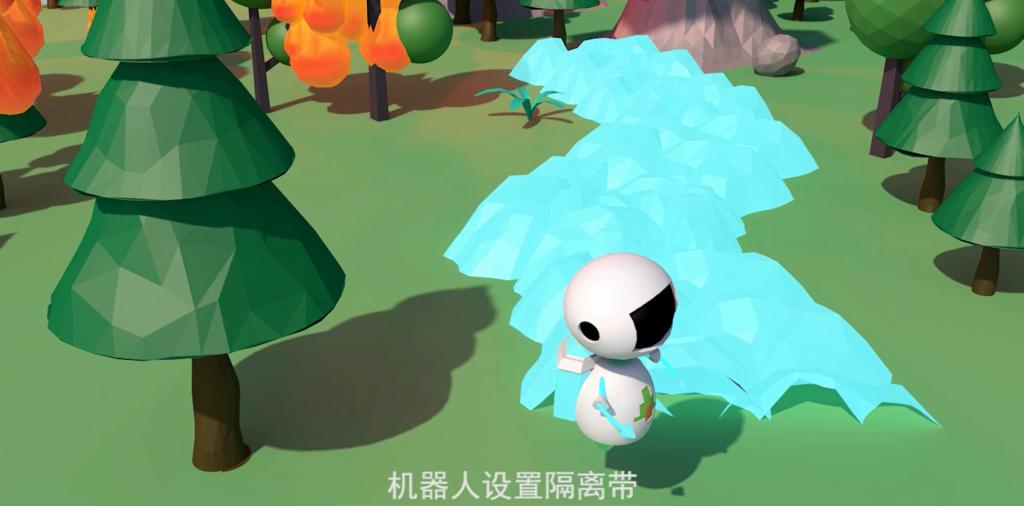 本作品为低多边形三维动画,名为《森林巡防机器人》,主题是人工智能畅想。森林发生火灾,极易蔓延, 目前很多地区都只是设置山火瞭望台,依靠人员24小时侦查,务求在山火尚属轻微时及时发觉,再通知控制中心派人救火,这个过程不但相当费时,而且靠人手侦查所得到的数据也未必精确。因此,我们设计出一款智能型的森林巡防机器人,通过低多边形三维动画的形式,用机器人日常巡查到机器人感应到火灾所做的一系列事情推动情节的发展,把这款机器人的智能巡护森林、自动报警、探测生命、设置隔离带等创新救火功能一一展现出来,再结合无人机救火技术提高效率。体现了森林巡防机器人具有提高效率、减少人力、保护森林、保护野生动物、维系整个地球的生态平衡等意义。突出世界飞速发展的未来人工智能将代替人类完成各种耗费时力的工作。