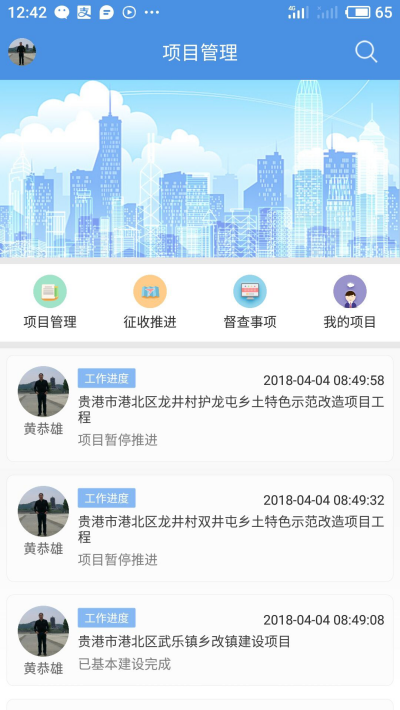 项目管理设计是系统设计的重点,其主要设计要求对项目信息实时掌握、项目实施进度、项目中存在的问题、项目资金使用情况、项目追责等方面进行管理,该功能重点设计在Android端上: 1.项目信息实时掌握 项目信息的实时掌握对于系统中的责任监管角色来说非常的重要,能够在Android端中能形象的表示该项目的项目负责人、项目完成进度和项目报告是否逾期等信息。 2.报送和反馈项目的进度以及项目存在的问题。 在项目管理分析可知,报送和反馈项目的进度以及项目存在问题时需要考虑两个问题,其一是反馈信息的表现形式,其二是扁平化管理的问题。 作品设计的难点在于如何对项目信息实时掌握以及如何实现扁平化管理。