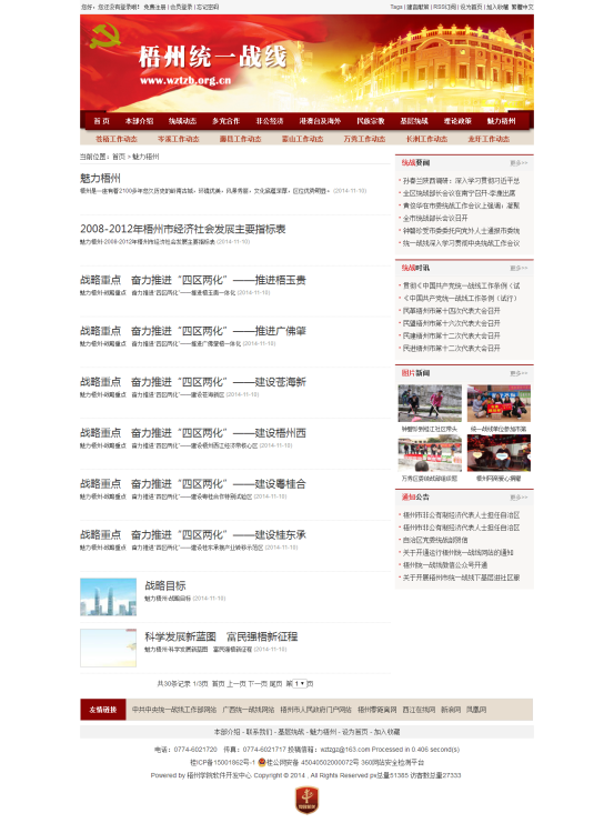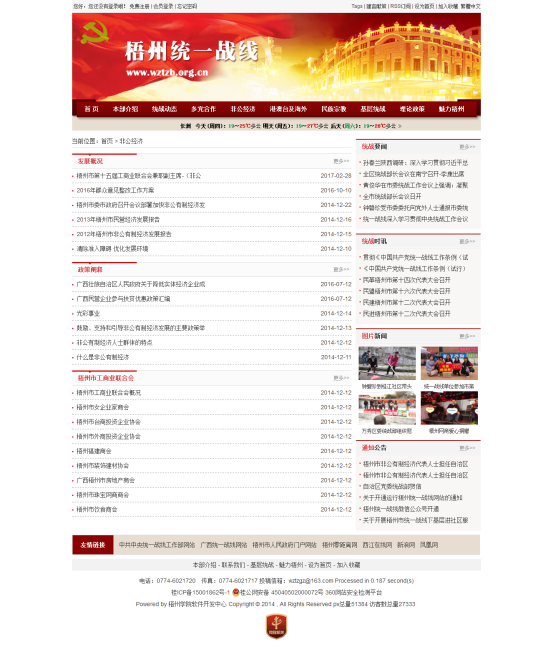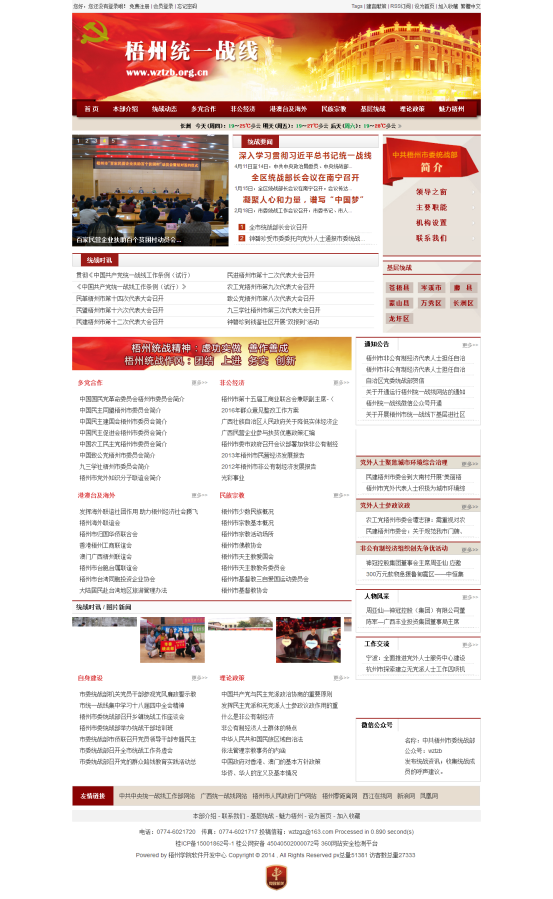 “中共梧州市委统一战线”网站建设的目的是让梧州市委统战部及时发布政务工作情况,让公众了解部门的资讯、理论政策、多党合作、民族宗教、港澳台及海外、党外干部、非公经济、党外知识分子等关键信息,掌握社会和经济发展的动态,更好的监督部门工作,促进整个社会文明程度的不断增高,提高政府办事效率,减少行政成本,以最大程度方便企业经营管理和公众的日常生活为重要目标,造福于民众。同时顺应了我国政府改革发展趋势的行动举措,并充分保障公民知情权、参与权和监督权的必要环节,对于加强构建社会主义和谐社会的能力将起到极其重要的促进作用。