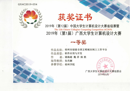 (1)2019年(第1届)广西大学生计算机设计大赛一等奖