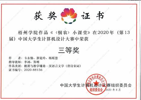 16. 项目名称:< 悯农>小课堂 负责人:韦永愉