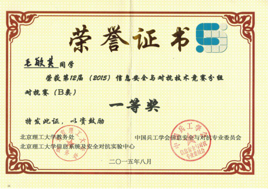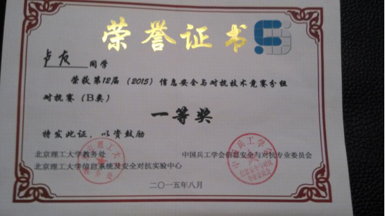 2015第12届全国信息安全与对抗技术竞赛国赛获奖
