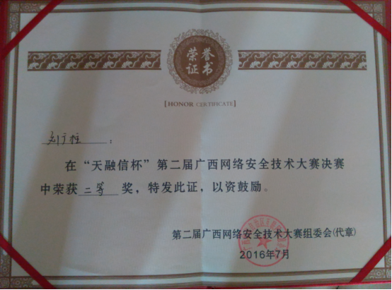 获奖人:陈冠宇 获奖等级:省级二等奖