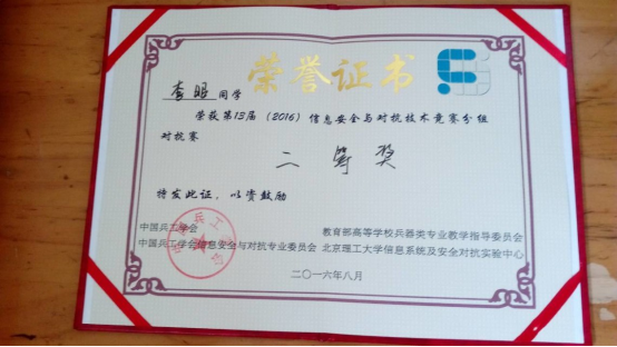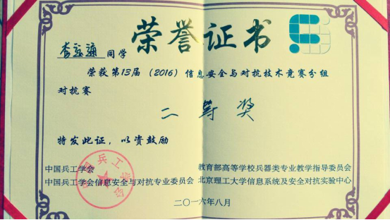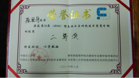 2016全国信息安全与对抗技术竞赛国赛获奖