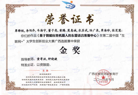 ”大学生创新创业大赛广西选拔赛区级金奖:基于智能应答机器人的东盟语言客服中心