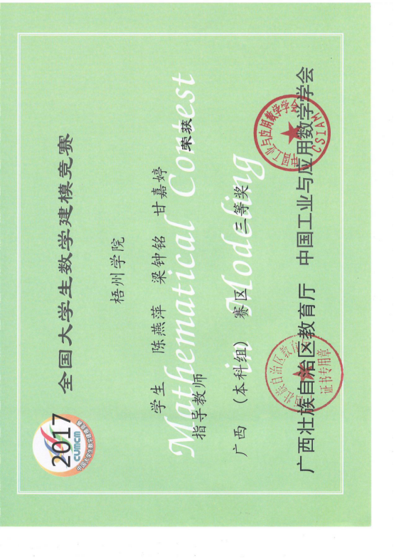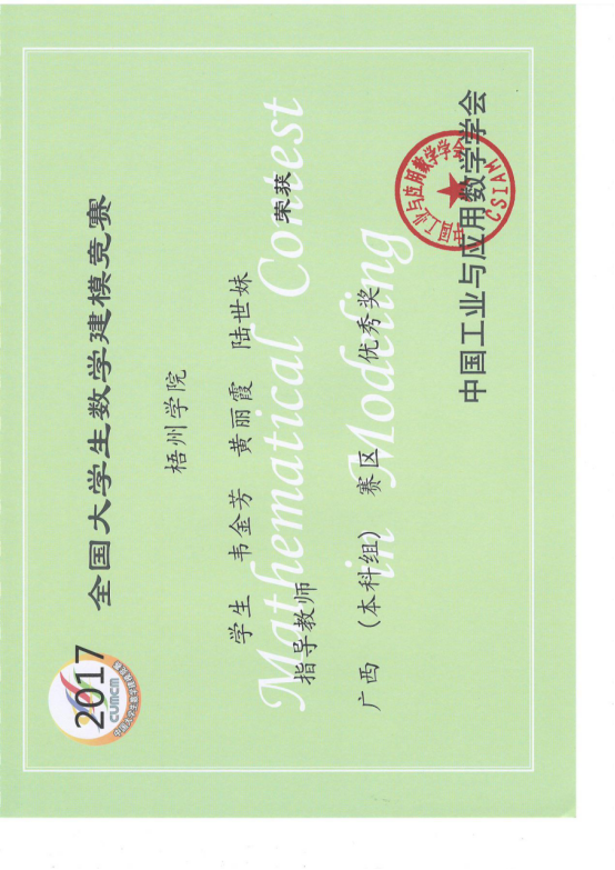 全国大学生数学建模大赛广西区赛优秀奖