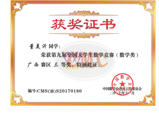 2017全国大学生数学竞赛省赛获奖