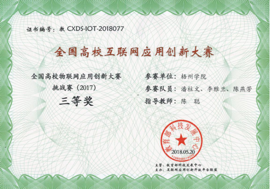 年全国高校物联网应用创新大赛——潘柱文、李雅兰、陈燕芳