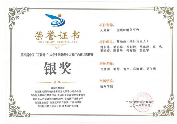 ”大学生创新创业大赛区级银奖:艾克森—优质
