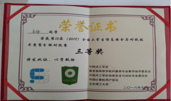 2018第15届全国信息安全与对抗技术竞赛国赛获奖