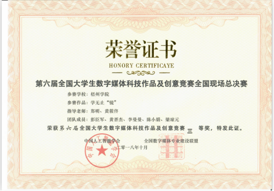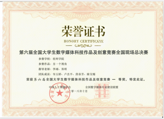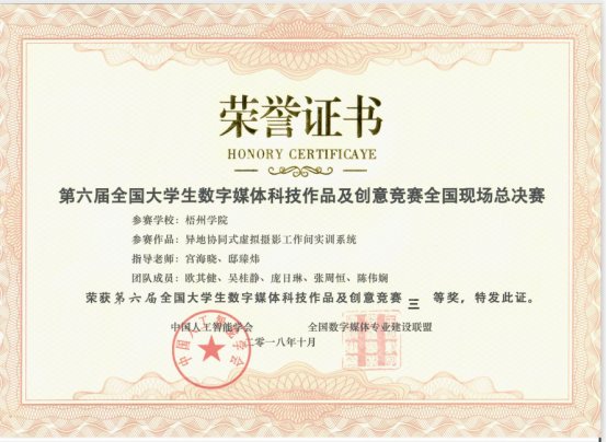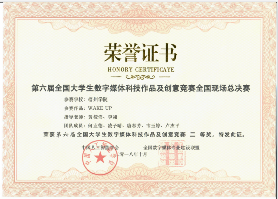 2018第六届全国大学生数字媒体科技作品及创意竞赛全国总决赛获奖