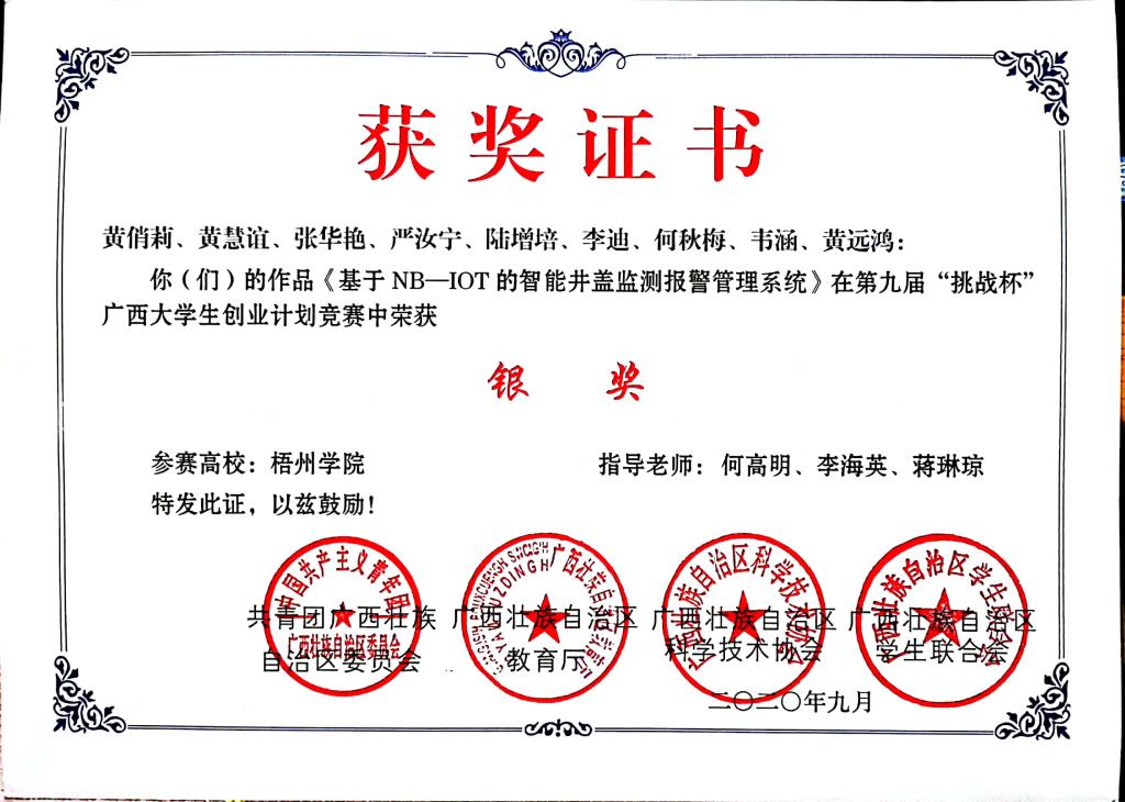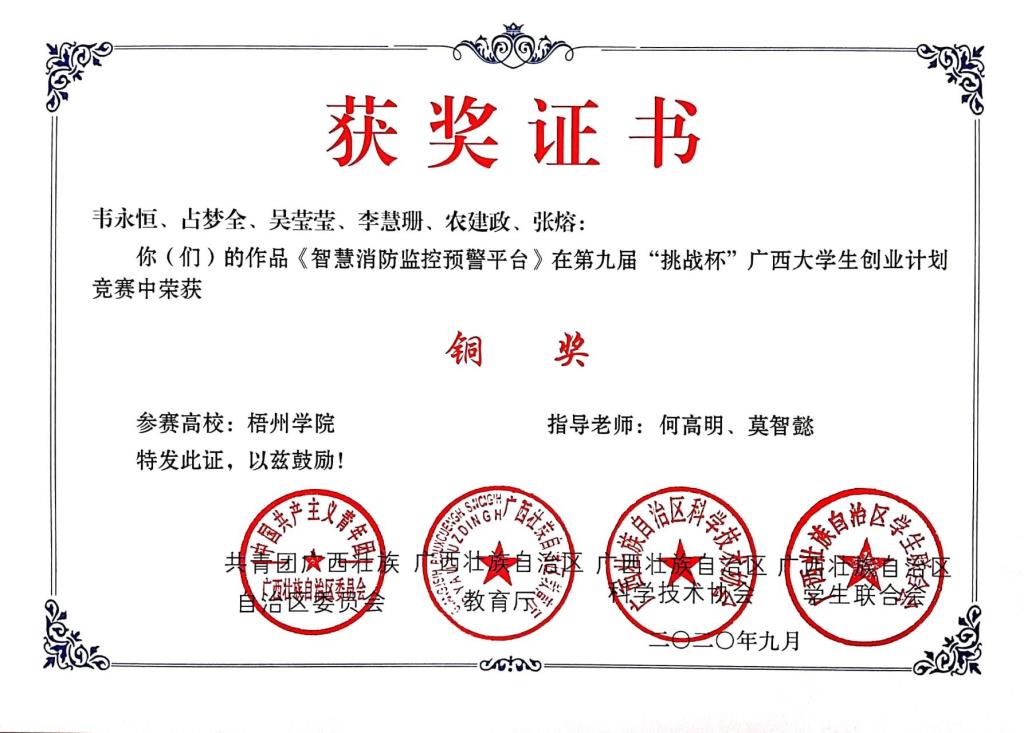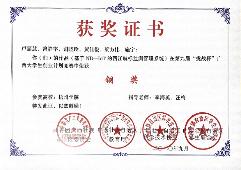 第九届“挑战杯”广西大学生创业计划竞赛获奖(5项)