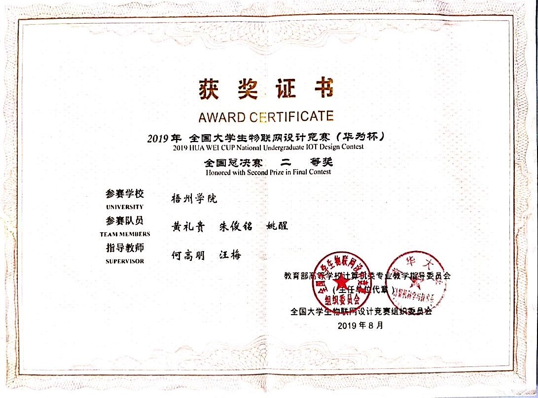 2019年全国大学生物联网设计竞赛(华为杯)获奖