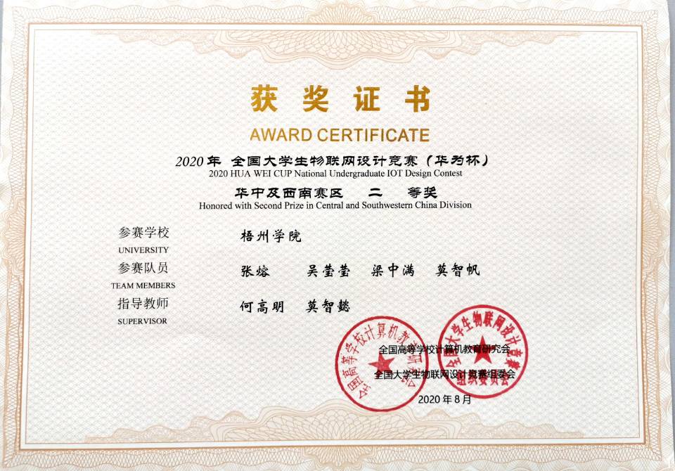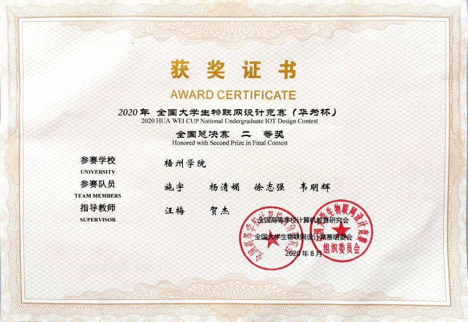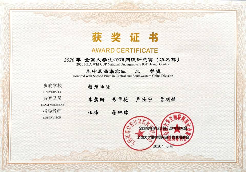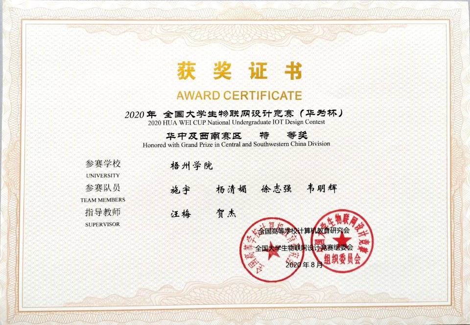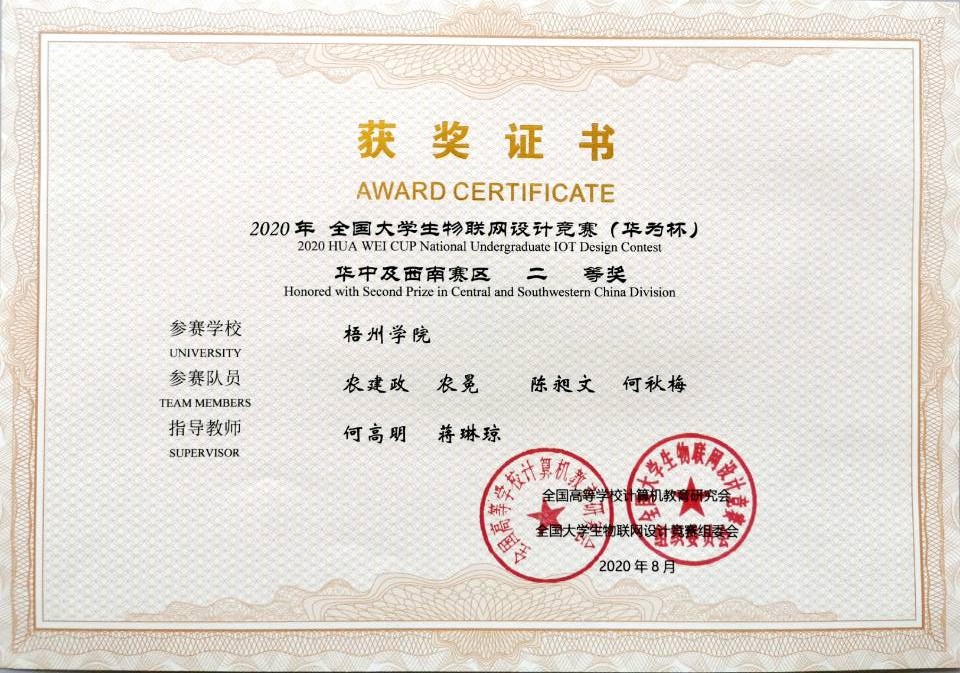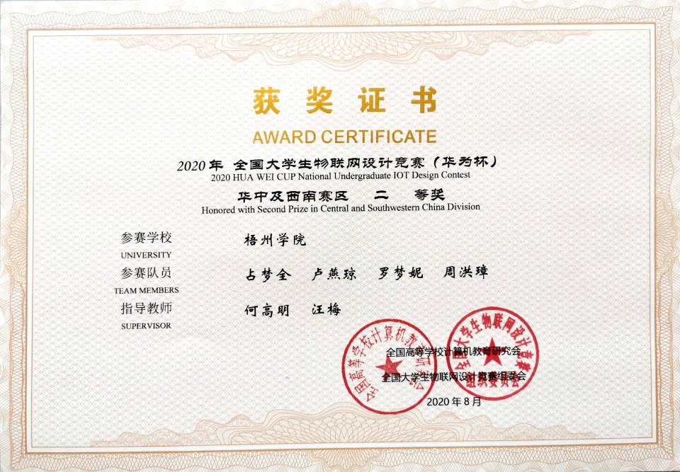 2019年全国大学生物联网设计竞赛(华为杯)获奖