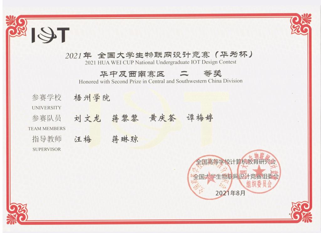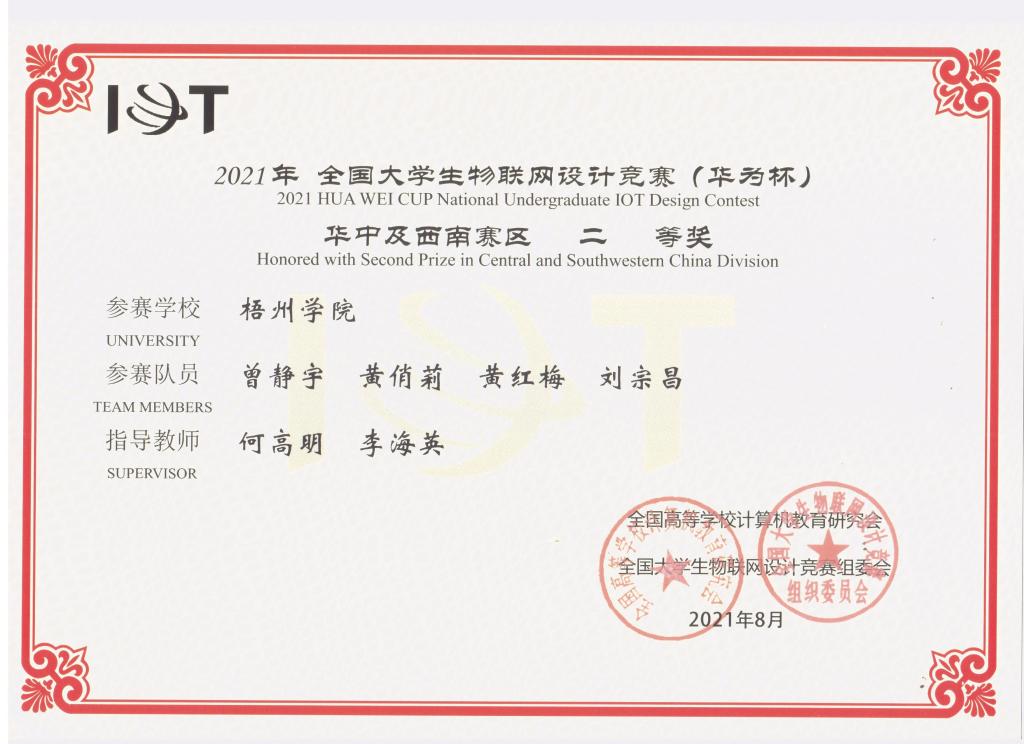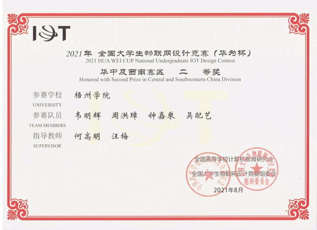 2021年全国大学生物联网设计竞赛(华为杯)获奖(4项)