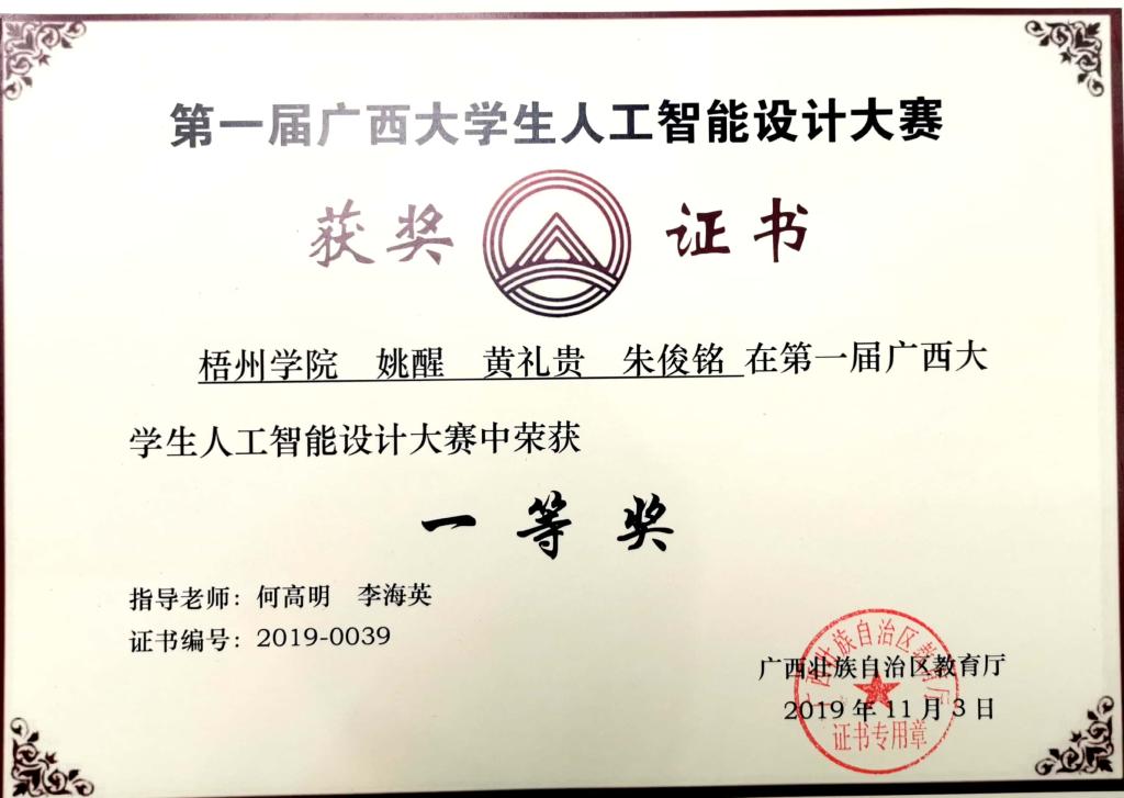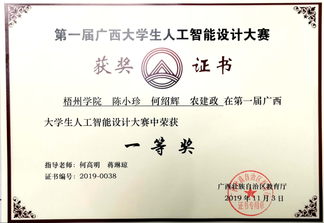 2019第一届广西大学生人工智能设计大赛区赛获奖(3项)