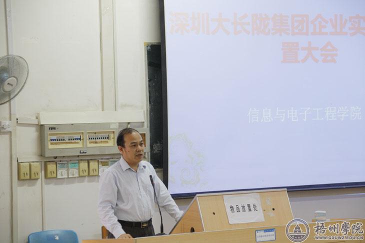 4月2日下午,我校信息与电子工程学院在综合教学楼N303教室举行2012级电子专业类学生实训动员大会,对即将走进企来一线的同学进行岗前教育。学校副校长玉振明及该院相关领导、教师参加会议。